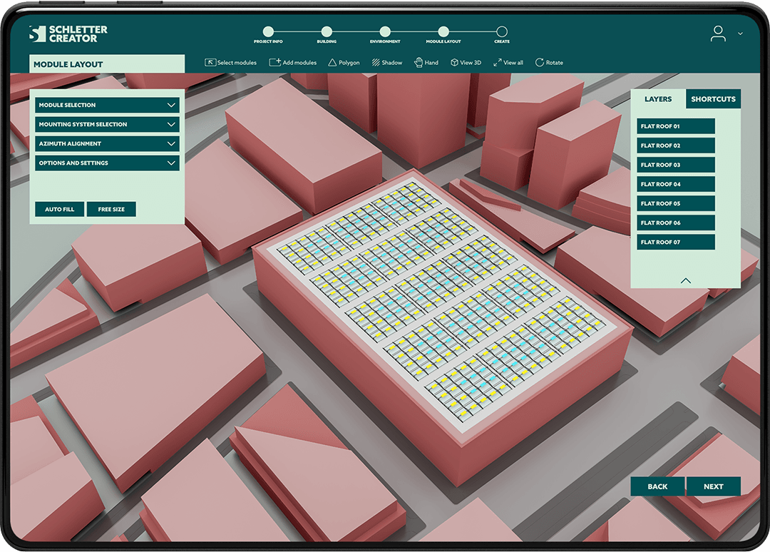 When it comes to rooftop project planning, appearance is as important as performance. That’s why the Schletter Creator doesn’t stop at calculating your project dimensions and bill of materials for you—it also shows you exactly what it’s going to look like.