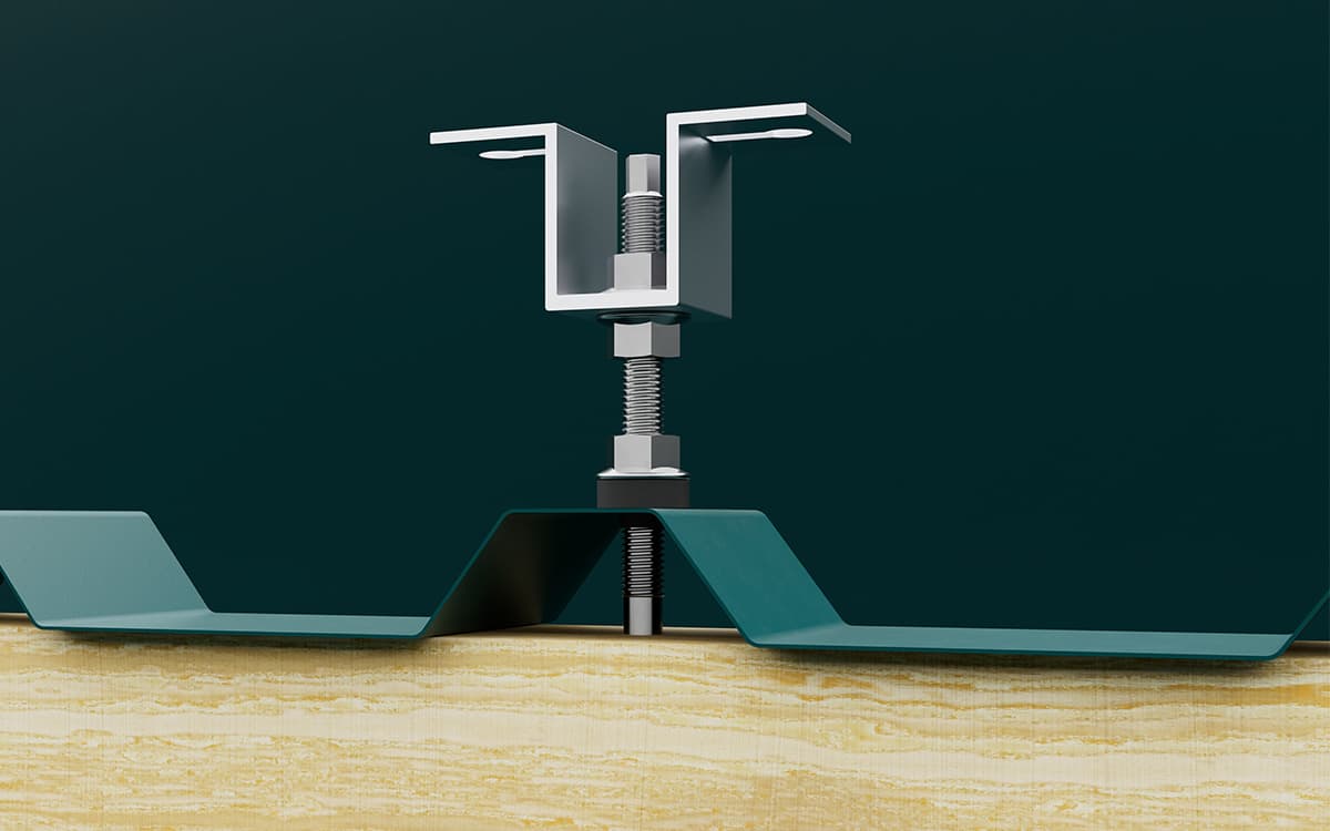 Kendinden destekli trapez sac veya sandviç çatılar, montaj sisteminizi her zaman alt strüktüre sabitlemenize izin vermez. Bu durumlar için, çatı kaplamasına doğrudan sabitleyebileceğiniz doğrudan bağlantı elemanları sunuyoruz.
